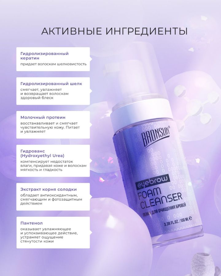 Пенка для очищения бровей BRONSUN, 100 мл