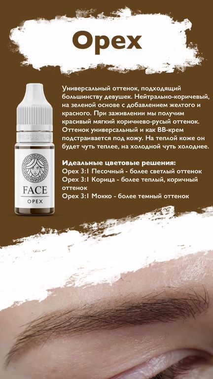 Так как Орех - это нейтральный оттенок, он подстраивается под кожу. На теплой коже он заживет чуть теплее, на холодной - холоднее. Поэтому при работе на холодной коже мы рекомендуем утеплять Орех Корицей.