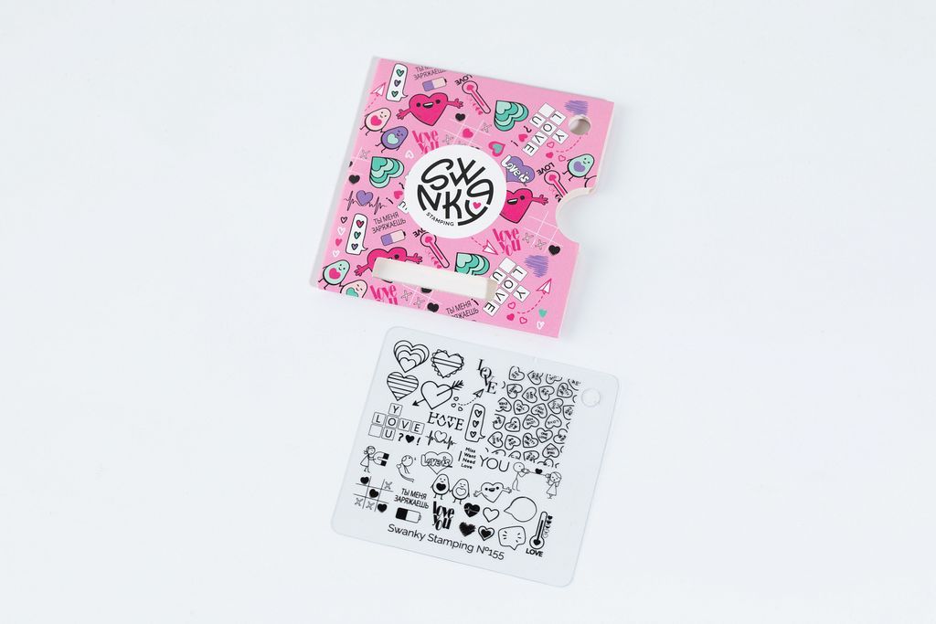 Маленькая пластина с большим выбором изображений на тему любви. Милая и нежная, тут вы сможете найти разные сердечки, любовные надписи, милых парочек. С пластиной 155 можно воплотить самые разные дизайны от романтичных и нежных, до стильных и трендовых!