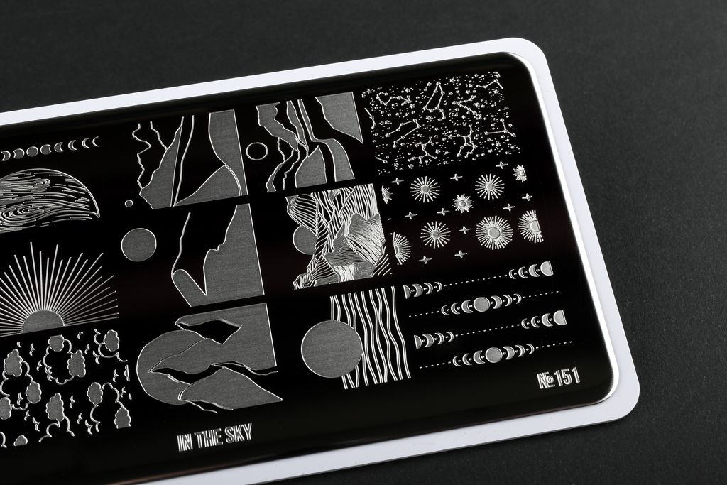 Вдохновение для нового дизайна ты найдешь на небе. Укрась ногти любимых клиентов звездами, облаками лунами с этой завораживающей пластиной.