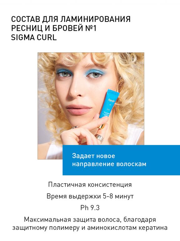 Первый состав для ламинирования ресниц Sigma Curl раскрывает кутикульный слой, способствует размягчению и набуханию ресницы. На этом этапе закладывается будущая форма ресницы и ее изгиб.