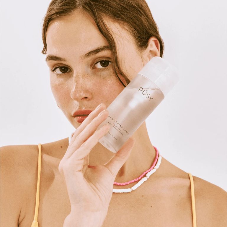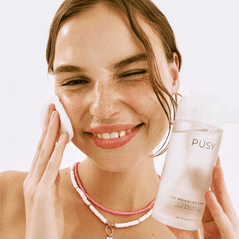 Охлаждающий утренний тоник PÚSY придает свежесть и сияние коже, восстанавливает pH-баланс, убирает ощущение стянутости, увлажняет, регулирует выработку себума.